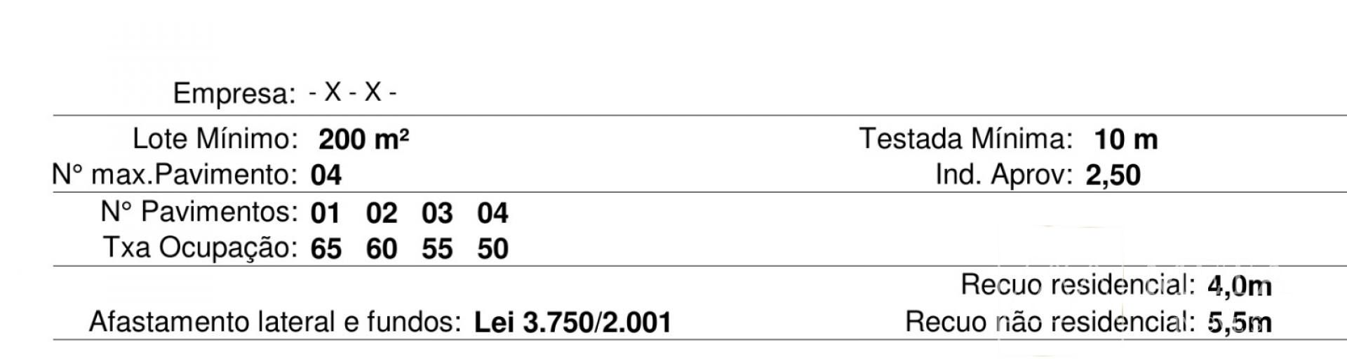 TERRENO COM 350 M212 X 30 65% max de ocupação com 1 pavimento construído – 50% max de ocupação com 4 pavimentos construídos.